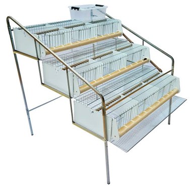 Exemplo de bateria com 3 gaiolas suspensas para codorna.