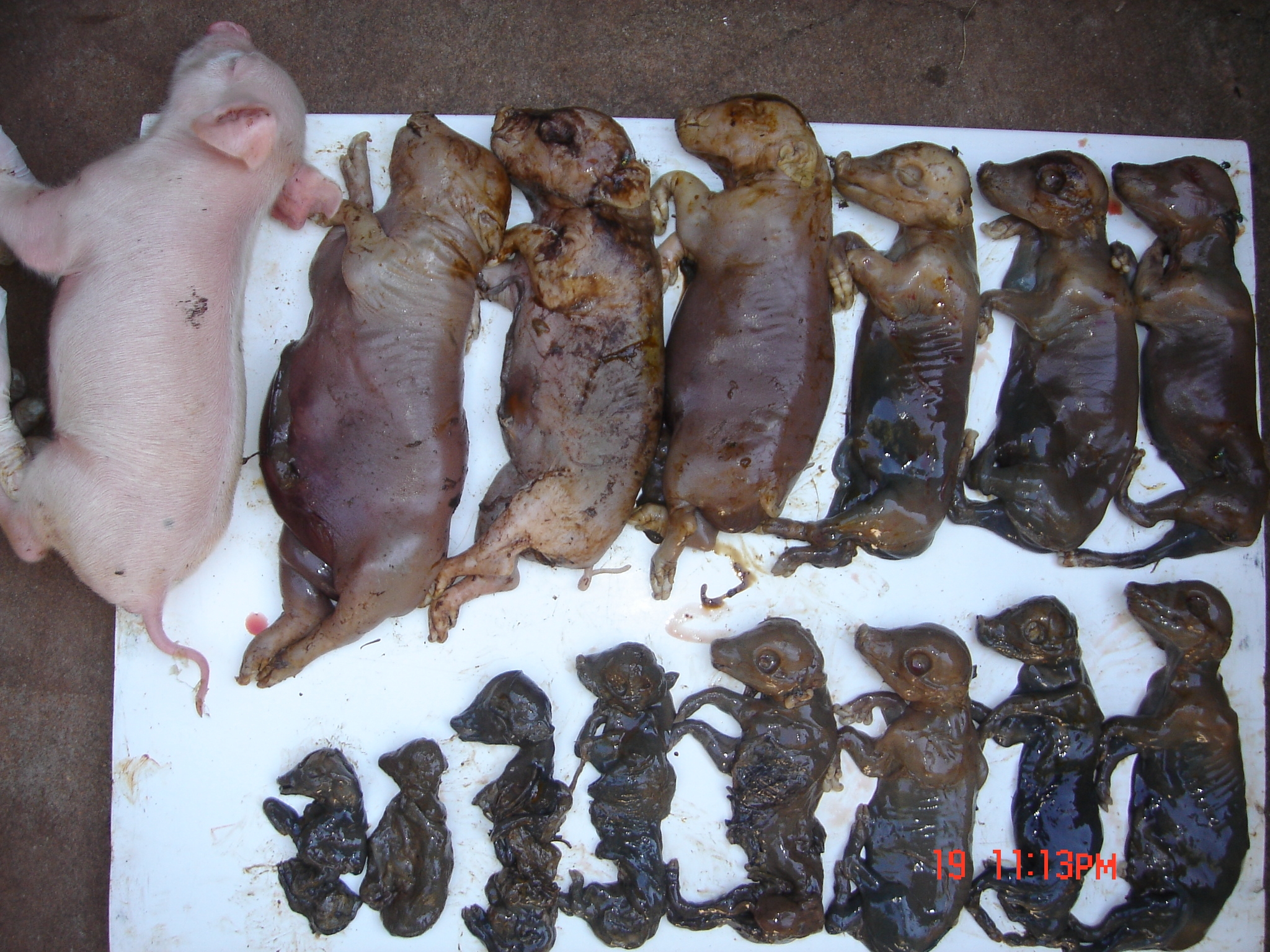 Problemas reprodutivos nas marrãs, especialmente referente aos leitões como aumento do número de natimorto, fetos mumificados, leitegada de pequeno tamanho e perdas embrionárias.